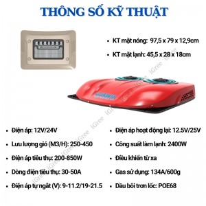 Với công suất làm lạnh 2400W và 2 quạt tản nhiệt lớn, điều hòa đảm bảo không gian cabin luôn mát sâu chỉ sau vài phút, phù hợp với xe đầu kéo, xe tải thùng dài hoặc xe khách.