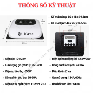 | Điều hòa iGree 2 quạt – 12V | 9.800.000 ₫ |