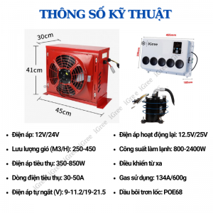 Điều hòa xe tải iGree 12V/24V là dòng điều hòa chạy hoàn toàn bằng điện ắc quy, thiết kế dành riêng cho xe tải nhỏ, xe container và máy công trình.